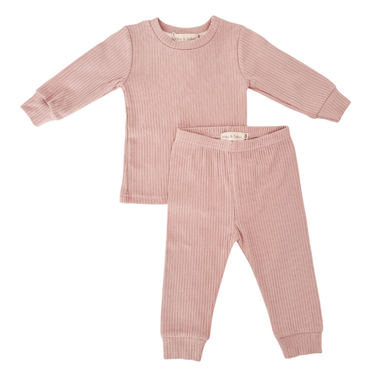 Organic Cotton Ribbed Lounge Set | Marshmallow Pink